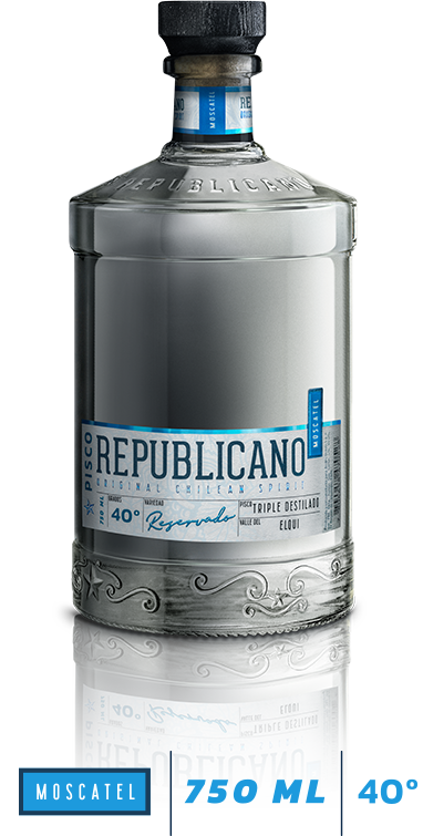 Tras un proceso de guarda y posterior triple filtrado en frío nace Republicano Moscatel, un Pisco de aroma intenso, con notas frutales y cristalino.